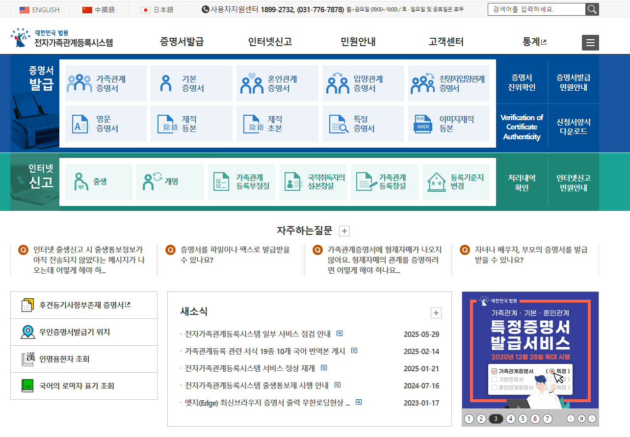 - 공공기관이나 은행 제출용 가족관계증명서 작성