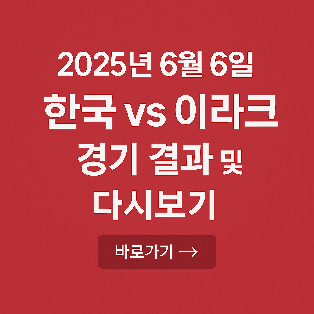 2025년 6월 6일 대한민국 축구 국가대표팀이 이라크와의 월드컵 예선 경기에서 2:0 승리를 거두며 본선 진출을 확정했습니다. 경기 요약, 주요 선수 평가, 무료 다시보기 링크까지 한눈에 정리해드립니다.